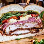 Bold, crunchy, and deeply satisfying, this crispy chicken cutlet sandwich brings restaurant-style indulgence straight to your kitchen. It’s built on layers of contrasting textures—golden-fried chicken, velvety mozzarella, smoky roasted peppers, peppery arugula, and a slick of bold pesto all stacked inside a crusty Italian roll. Each bite delivers rich Italian flavors and a perfectly balanced structure, making it more than just a sandwich—it’s a full-on experience.