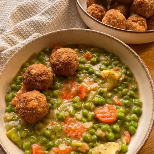 Ready in under an hour, this creamy mixed-vegetable stew pairs perfectly with golden, oven-baked meatballs that turn irresistibly tender on the inside and lightly crisp on the outside. It’s the kind of meal that brings together nostalgic comfort with an upgraded, modern twist. Serve it alone for a hearty lunch or add a light side like crusty bread, quinoa, or a fresh salad such as this fresh herb chicken salad for a complete balanced dinner.