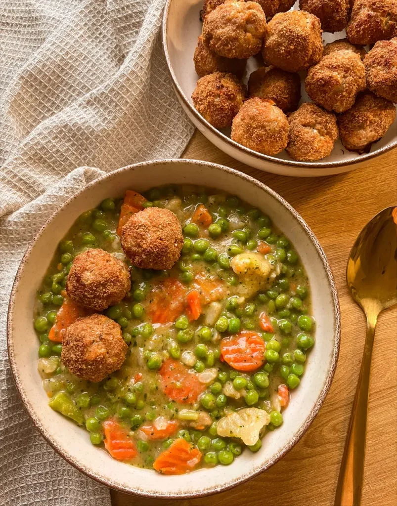 Creamy Vegetable Stew with Oven-Baked Meatballs