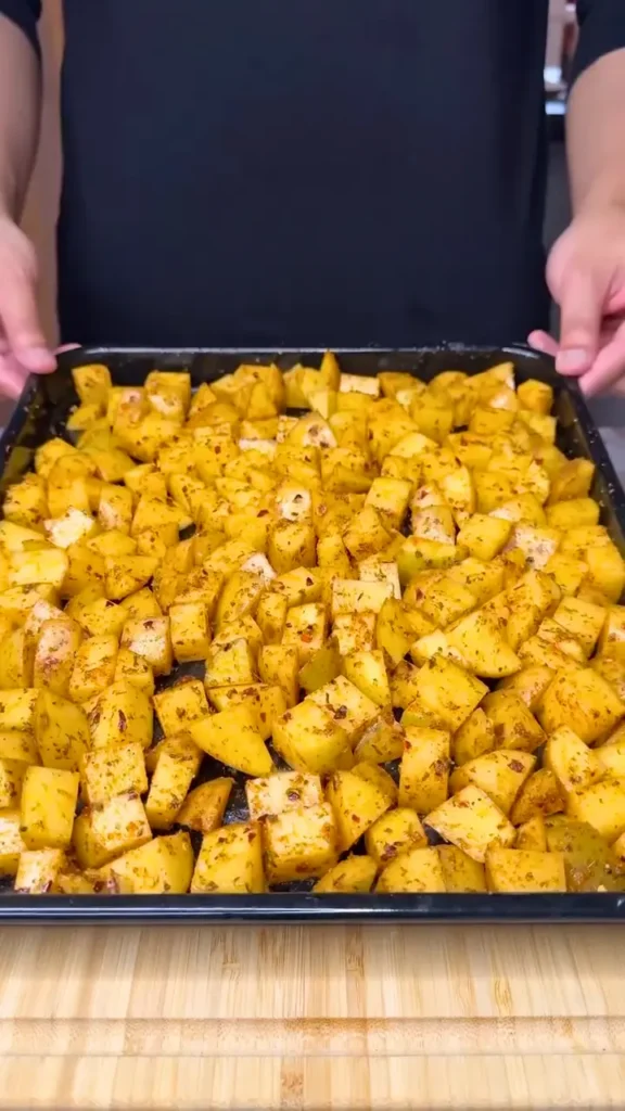 Let the cubes cook for 6–8 minutes, stirring occasionally, until they’re golden on the edges.