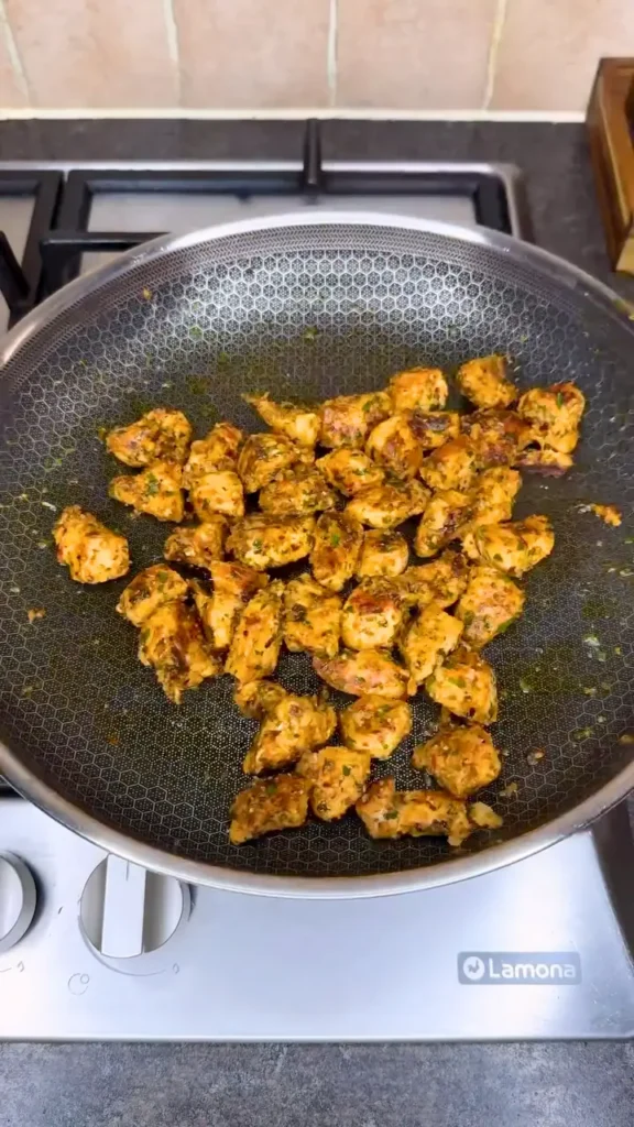 Season the chicken thoroughly so every cube is well-coated before it hits the pan.