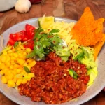 - Add toppings: Spoon the spiced beef over the lettuce. Top each bowl with sweet corn, chopped cherry tomatoes, grated cheddar, a spoonful of avocado mash, and a dollop of Greek yogurt.