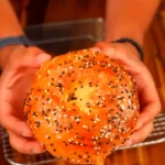 - Shape each portion into a ball, then press a hole through the center to form a bagel shape.