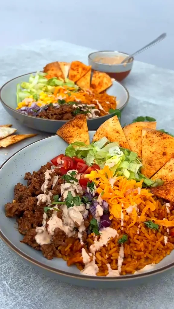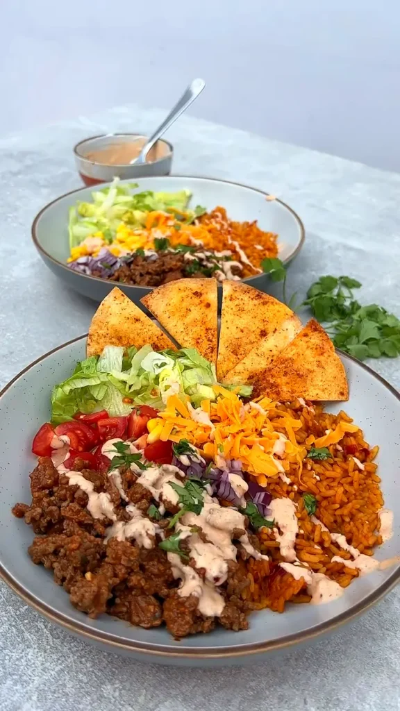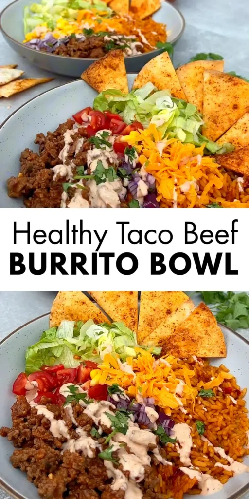 This high protein taco beef burrito bowl is a quick, flavor-packed dinner built with seasoned lean ground beef, fluffy Mexican-style rice, crisp lettuce, juicy tomatoes, sweetcorn, and a creamy chipotle yogurt sauce. It’s an easy 30-minute burrito bowl recipe that’s perfect for busy weeknights, meal prep lunches, and anyone craving a healthy takeout-style bowl at home.