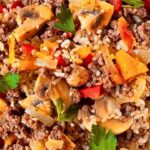 - Deeply savory from the seasoned ground beef and garlic-infused veggies