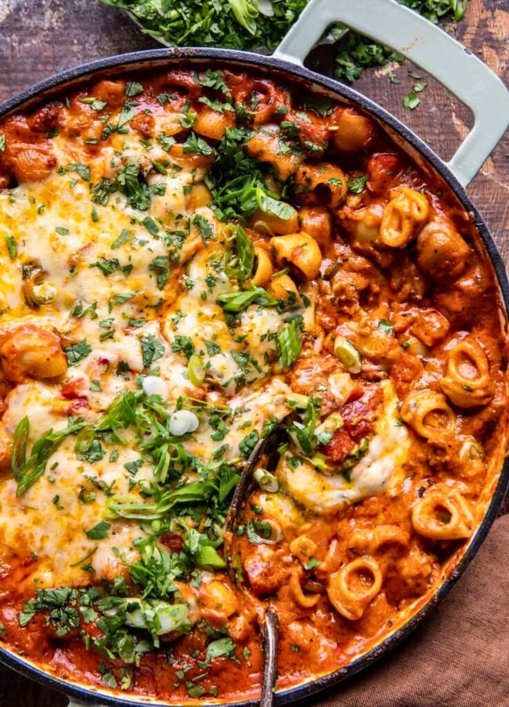 - Reduce heat to low, cover, and simmer for 12–15 minutes or until pasta is tender.