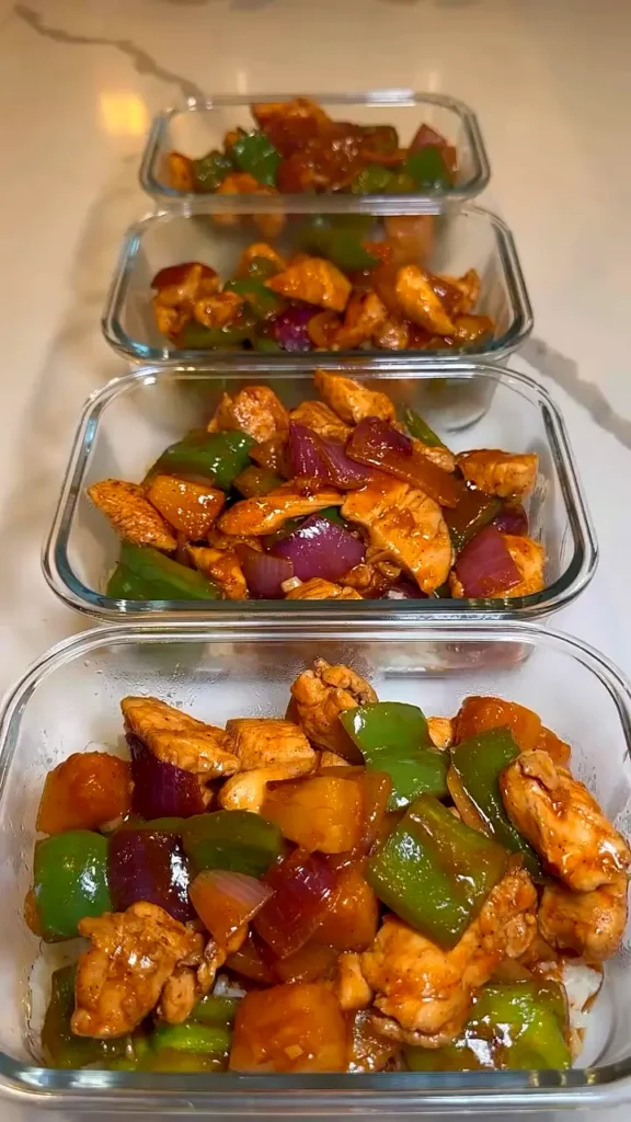 - Assemble bowls: Divide rice into 4 meal prep containers or bowls, then top evenly with the pineapple chicken mixture. Cool slightly before sealing containers for storage.