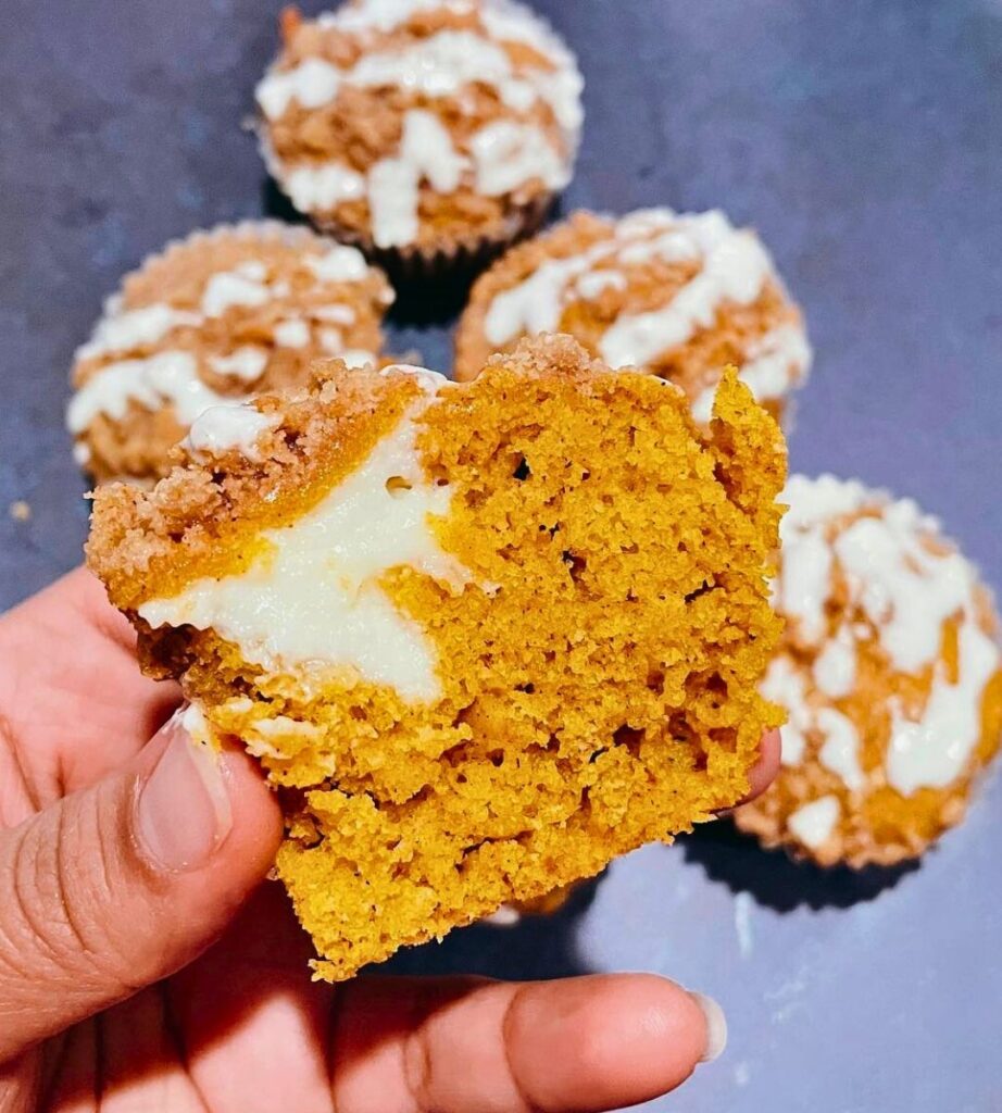 This simple mix of cream cheese, sugar, and vanilla transforms the muffins from standard pumpkin spice to something special. It melts into the muffin during baking, creating a soft, creamy center.